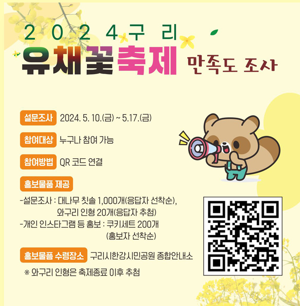 축제를 즐긴후 만족도 조사에 참여하면 추첨을 통해 선물을 증정하는 행사도 진행됩니다. 꼭 참여해 보세요.